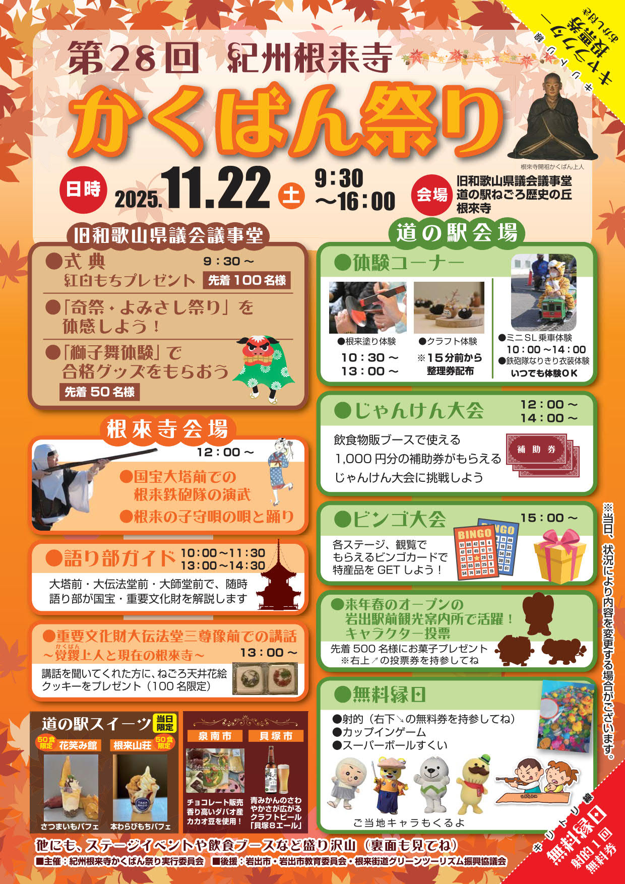 この機会に秋の岩出根来を是非ご堪能いただければ幸いです。